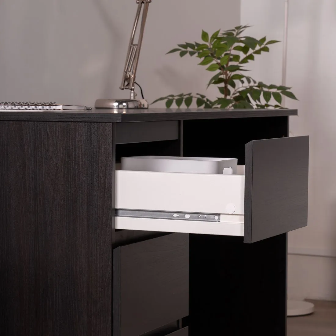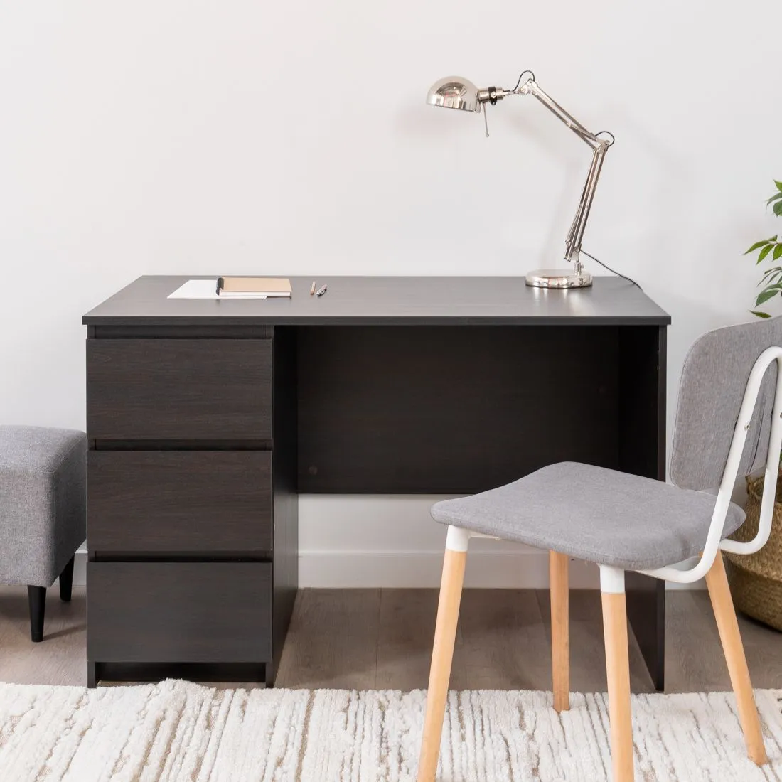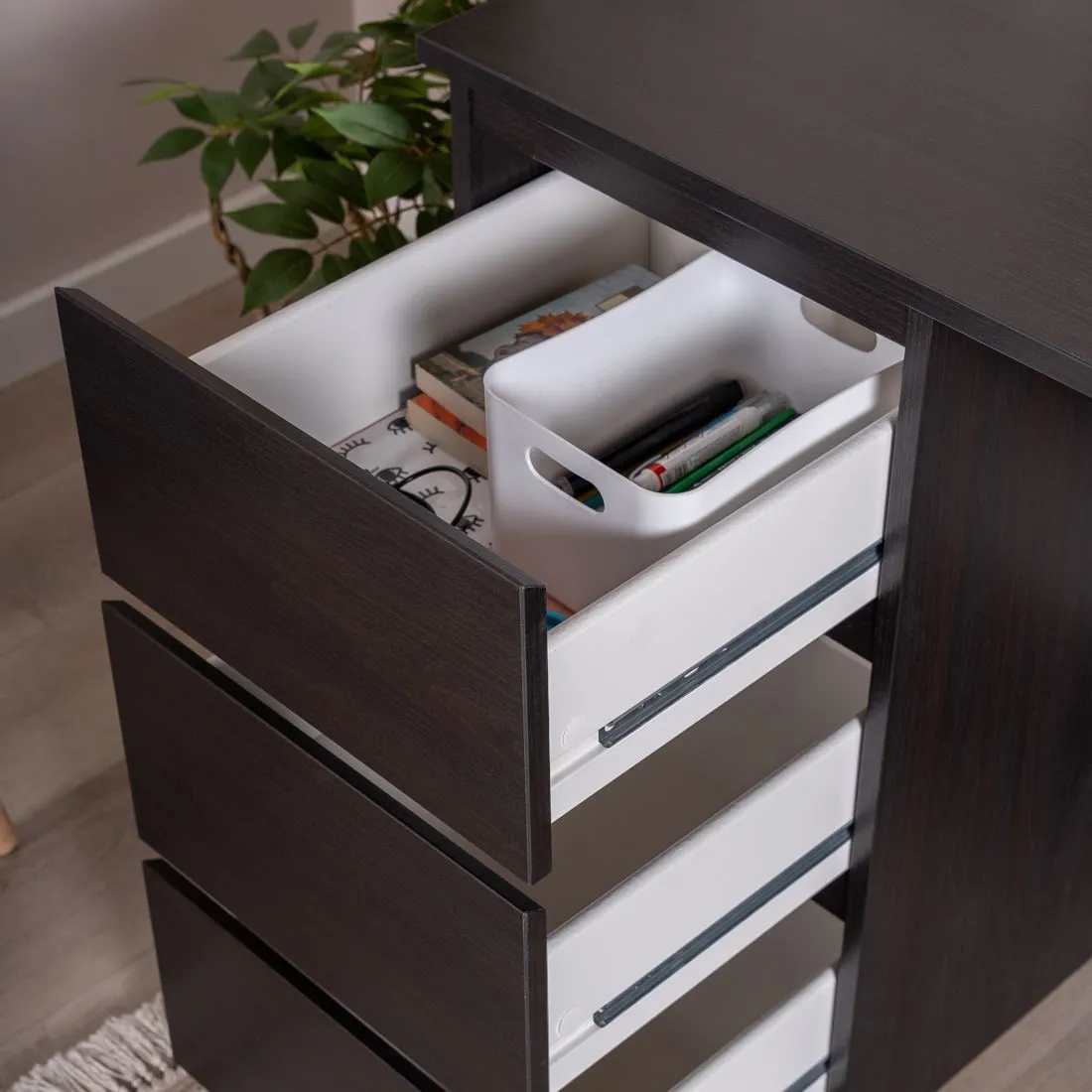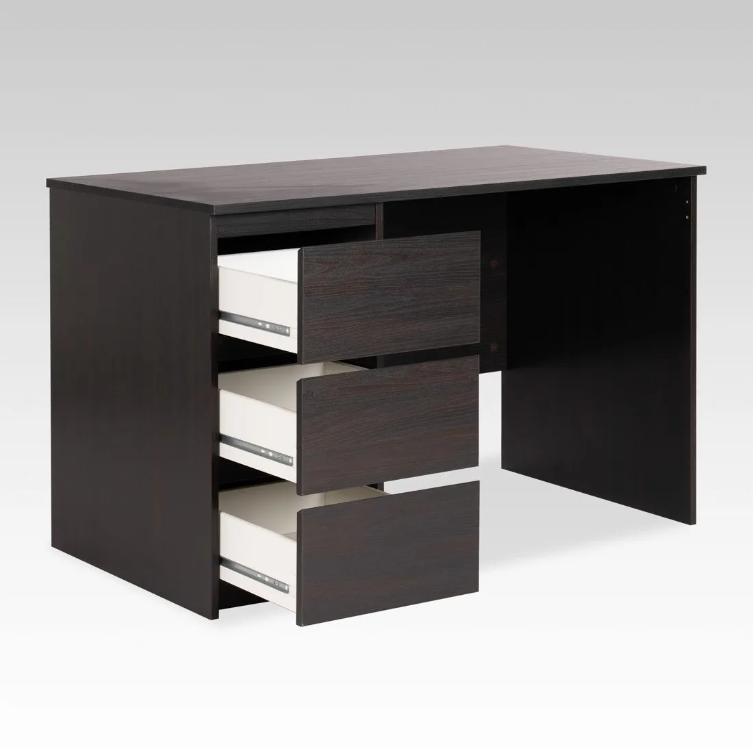 Стол письменный КАСТОР с тремя наружными выдвижными ящиками, 1510х650х750, цвет Дуб Венге. Изготовлен из кашированного ДСП толщиной  16 мм. Тумбу с ящиком можно разместить справа или слева под столешницей. Гарантийный срок для жилых помещений 24 месяца, для общественных помещений - 18 месяцев.