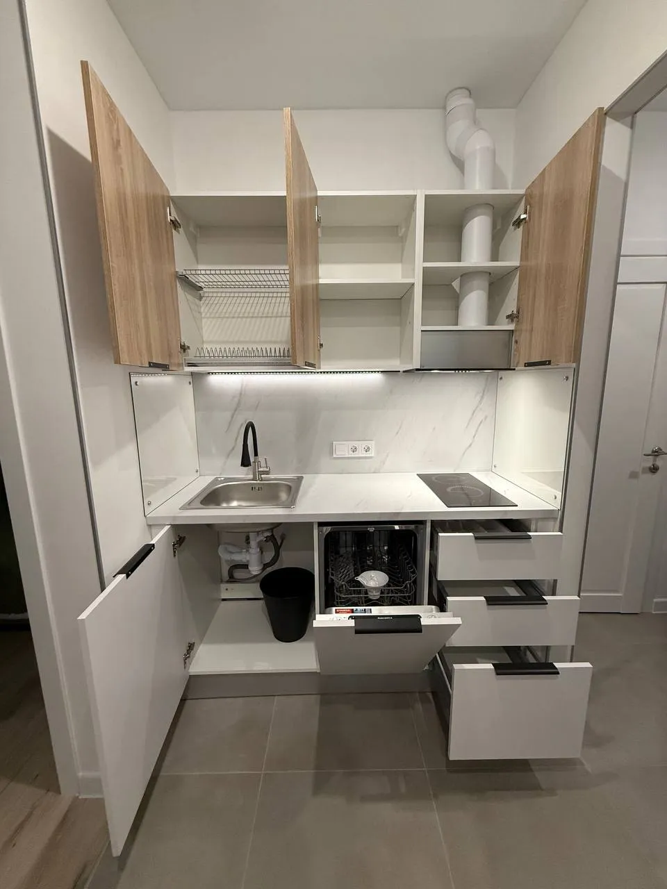 Перед нами стояла непростая цель: на минимальной площади создать максимально комфортное, функциональное и визуально привлекательное пространство, которое не только понравится будущим арендаторам, но и будет выглядеть как новое долгие годы, оправдывая высокую стоимость аренды.